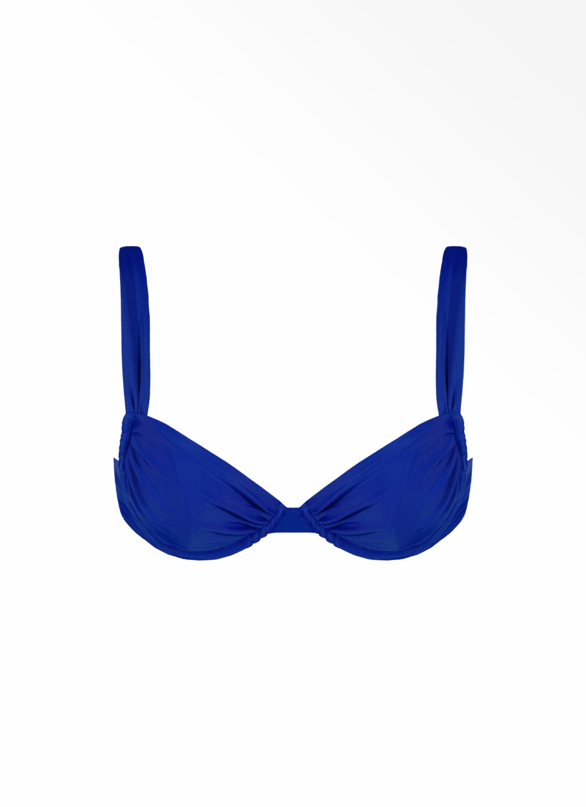 Our most flattering style yet, the Diana top in Royal blue was designed with elegance in mind. Beautiful heart shaped structure will lift & sculpt your bust and add volume. Featuring ruched underwire cups, cut and sewn to an undeniably admiring fit, elegant wide shoulder straps that can be adjusted for extra push up and gold clasp clousre at the back.