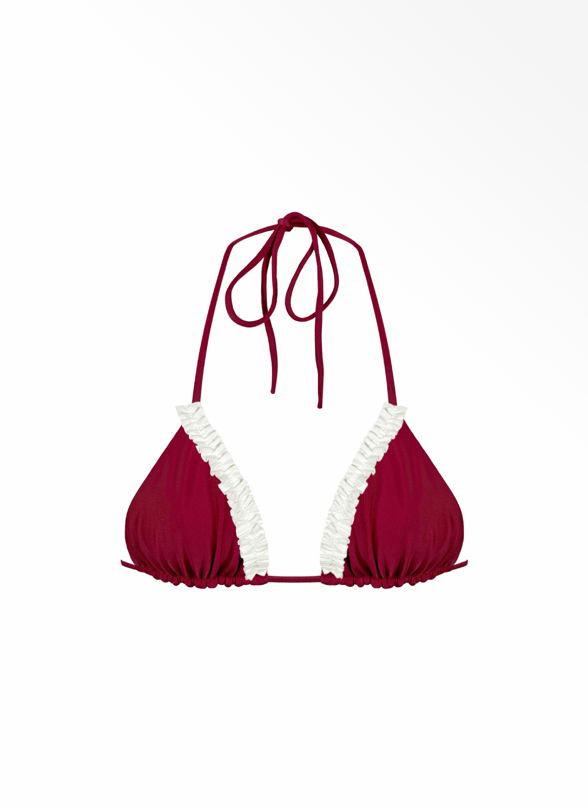 The Iris top in Babylon is our ruffly twist on the classic triangle top. It fits like a dream with adjustable coverage and ties at the back and neck. With it's eye-catching contrast detailing, this flirty top is truly one of a kind.