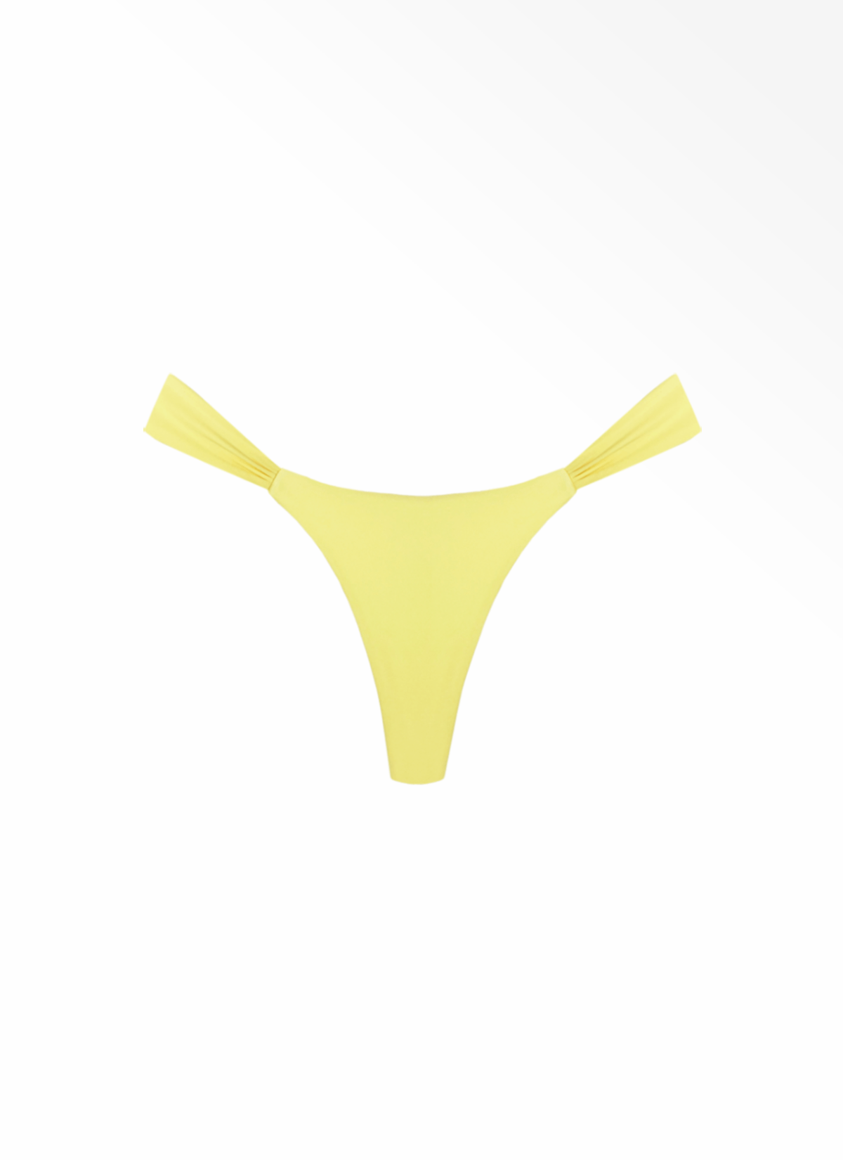 The Roma in Limonche is a thong bikini bottom featuring thicker side band with ruched detailing and minimal coverage, they are designed to elongate the leg.
