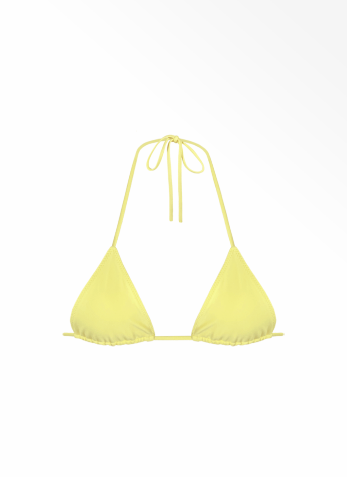 The Lolita in Limonche is a mini halter style triangle bikini top, featuring minimalistic coverage and thin straps that tie at the neck and back for full adjustability and a barely-there feel.