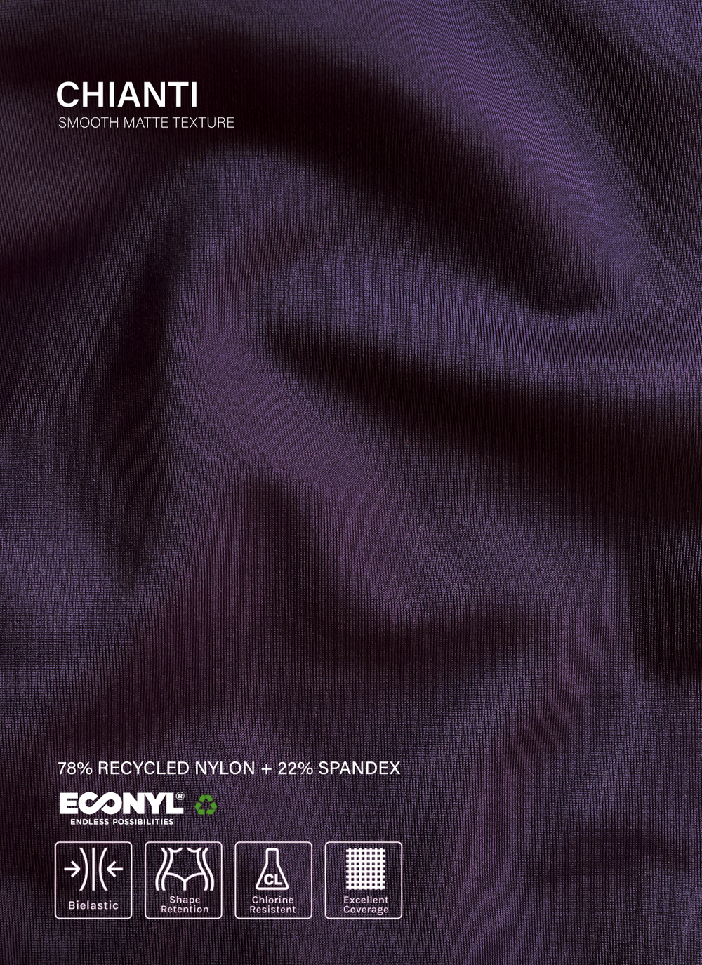 Luxuriously soft fabric, double-lined with a matte finish, crafted from ECONYL® nylon using regenerated and recycled materials.